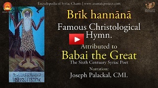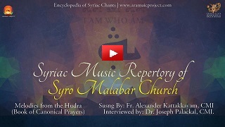 Yada Husawe | Syriac Songs Repertory of Syro Malabar Church Syriac Chant / Music Repertory of Syro Malabar Church. Here is a music treasure from the past. This is the fourth of forty-four melodies I recorded in the voice of Fr. Alexander Kattakkayam, CMI, a scholarly singer of Syriac chants in 1996. These recordings are significant because they contain melodies that are not currently in use. They are not in use because Fr. Abel Periyappuram, CMI, who prepared the Malayalam version of the Hudra, decided not to use them. Fr. Abel articulated his reason to do so in a letter to me on 15 December 1997..... |