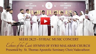 (SEERI) SYRIAC MUSIC CONCERT 2025 by St. THOMAS APOSTOLIC SEMINARY VADAVATHOOR Choir of St. Thomas Apostolic Seminary performs at the SYRIAC MUSIC CONCERT conducted by SEERI - St. Ephrem Ecumenical Institute, Kottayam, during the Ruby Jubilee Celebrations of SEERI. 15 September 2025.... |