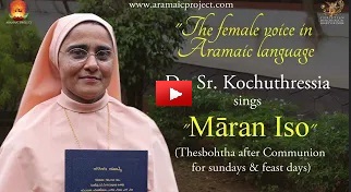 Sr. Kochuthressia - Female Voice of Aramaic Language - sings 'Maran Iso' Sister Kochuthresya sings her favorite melody from the Syriac Qurbana. |