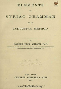 Ref. Code : 008-095 ELEMENTS OF SYRIAC GRAMMAR BY AN INDUCTIVE METHOD BY R. D. WILSON (ROBERT DICK WILSON), Ph.d
